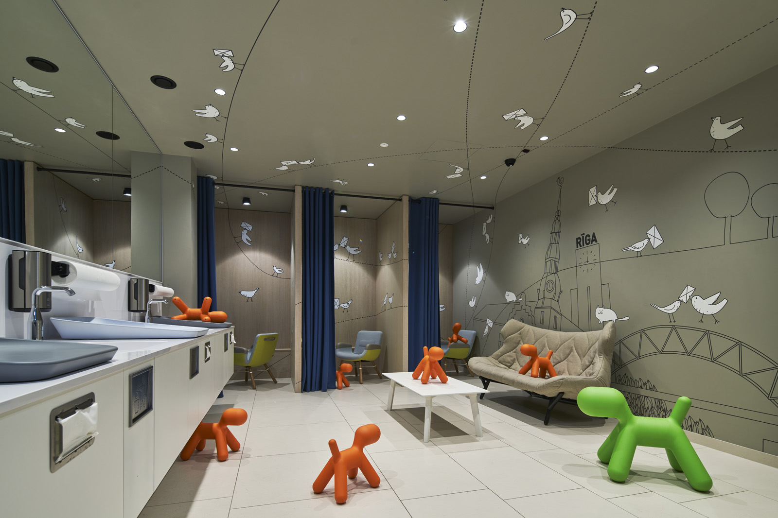Līdztekus ilgtspējai, bija būtiski radīt arī iekļaujošu vidi. Centra plānojums, navigācijas sistēma, vadulas un citi elementi veidoti tā, lai telpas būtu pieejamas arī cilvēkiem ar kustību un citiem funkcionāliem traucējumiem. Tāpat padomāts par jaunajiem vecākiem, kuriem radīta plaša un pārdomāta mazuļu telpa.