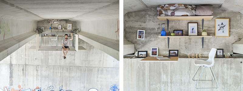 The same principles have dominated the design of our work environments ever since, not least as soaring commercial rents have prompted businesses to economise on space by encouraging employees to work from home. So far, most home workers have adopted the improvisational approach to workplace design favoured by the Blaschkas and Darwin, although few have been as bold as the Spanish furniture designer Fernando Abellanas, who, unable to afford studio rents in Valencia, constructed a suspended workspace with a desk, seat and shelves beneath a concrete road bridge.