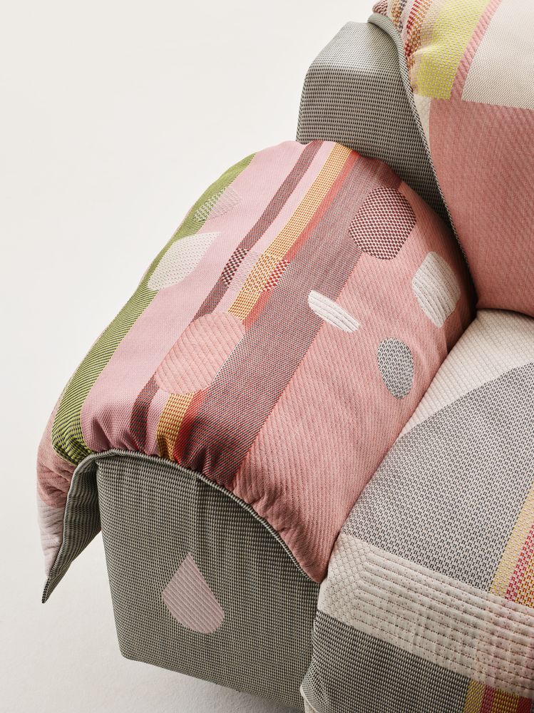 Vlinder dīvāns no Vitra no jauna interpretē tradicionālu austo segu.